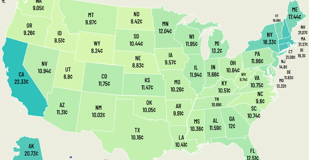 As of 2025, average monthly electricity bills hover around $153 across the United States. Electricity prices currently average roughly 17 cents per kilowatt-hour. Several factors influence current energy prices today, which include the rising demand for electricity during hot summers, cold winters, and the growing number of electric devices and electric vehicles in use. On top of that, there’s also local and state taxes added to the total bill. Electric bills in states such as Connecticut and Hawaii are often over $200 as the costs there are higher per unit.